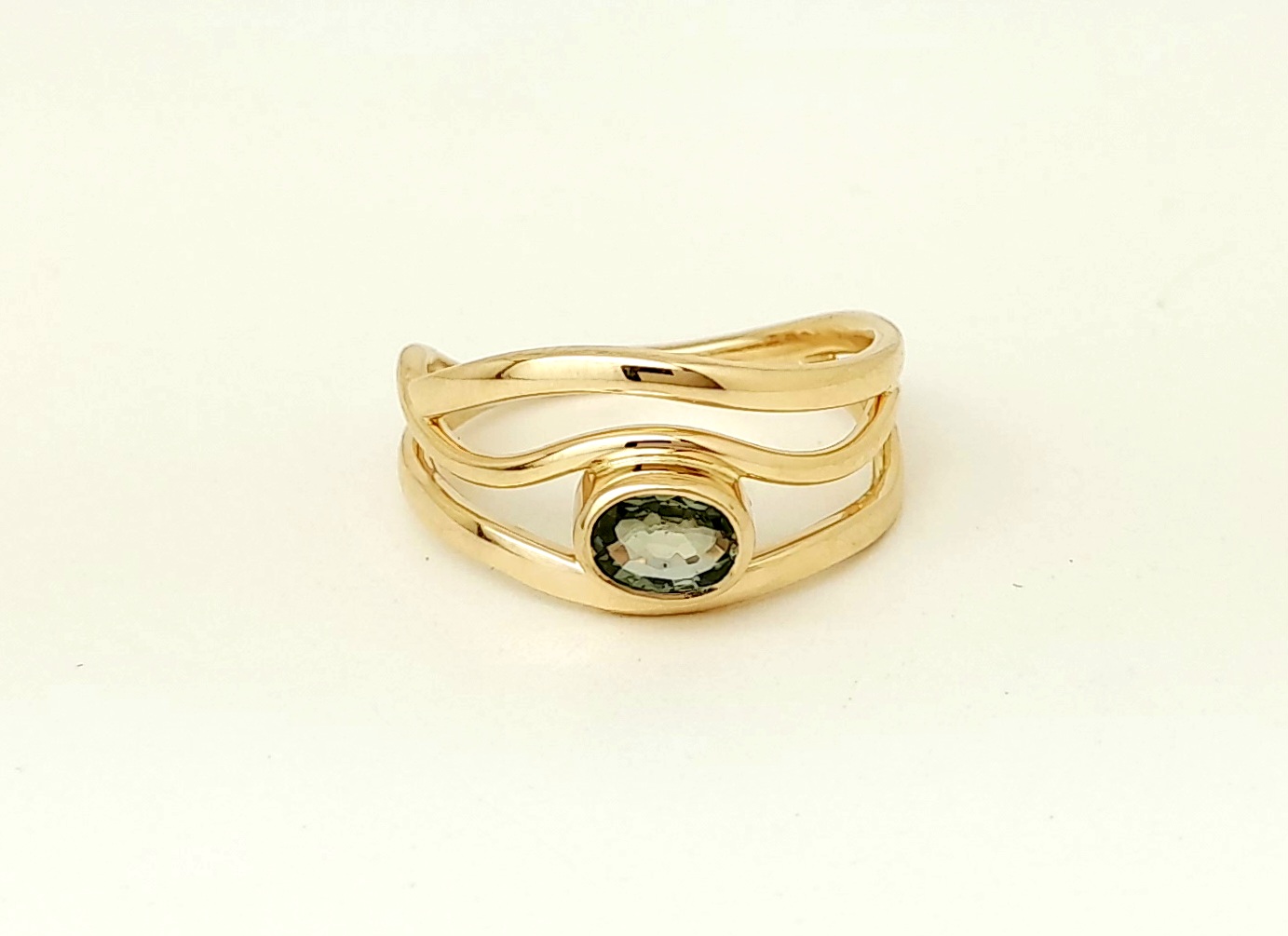 Gold ring with green sapphire
